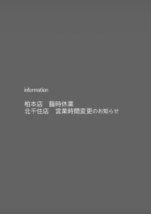 - 柏本店 臨時休業・北千住店 営業時間変更のお知らせ